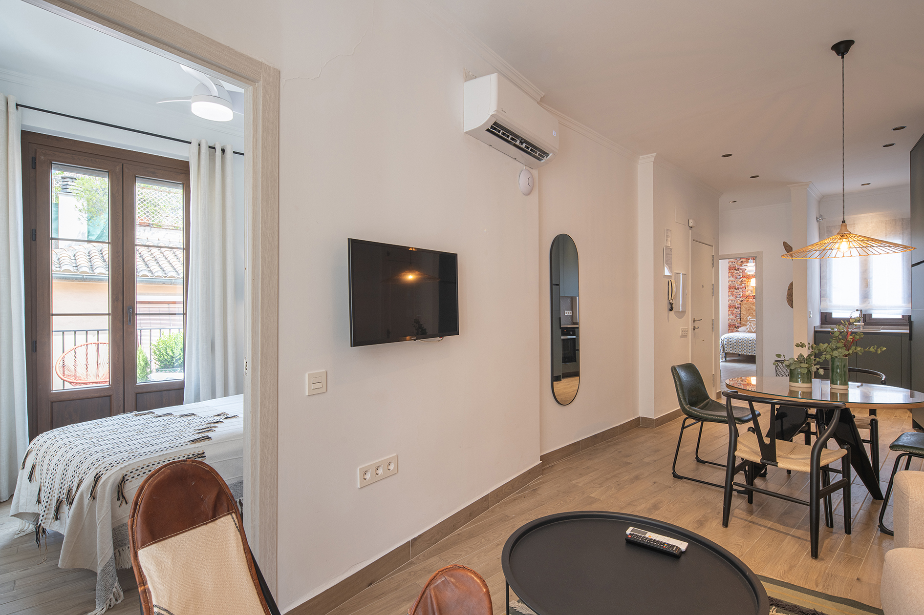Ático Salvia es un luminoso ático de dos dormitorios, ambos con terraza. El salón, confortable y con balcón, se integra con el comedor y la cocina abierta totalmente equipada, creando un espacio funcional y acogedor. Además, dispone de WiFi de alta velocidad, climatización en todas las estancias, ropa de cama, toallas y todo lo necesario para la lavandería.