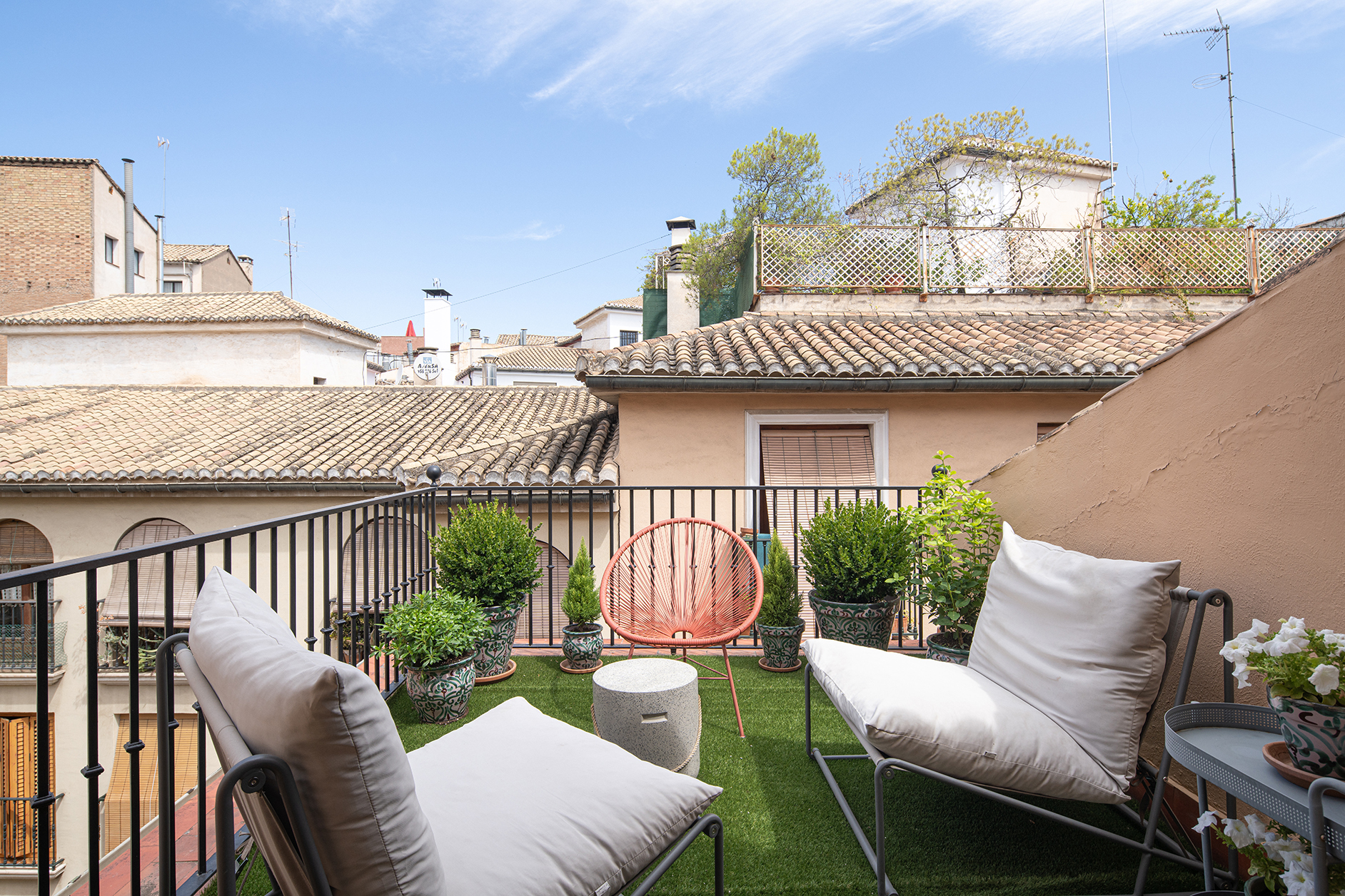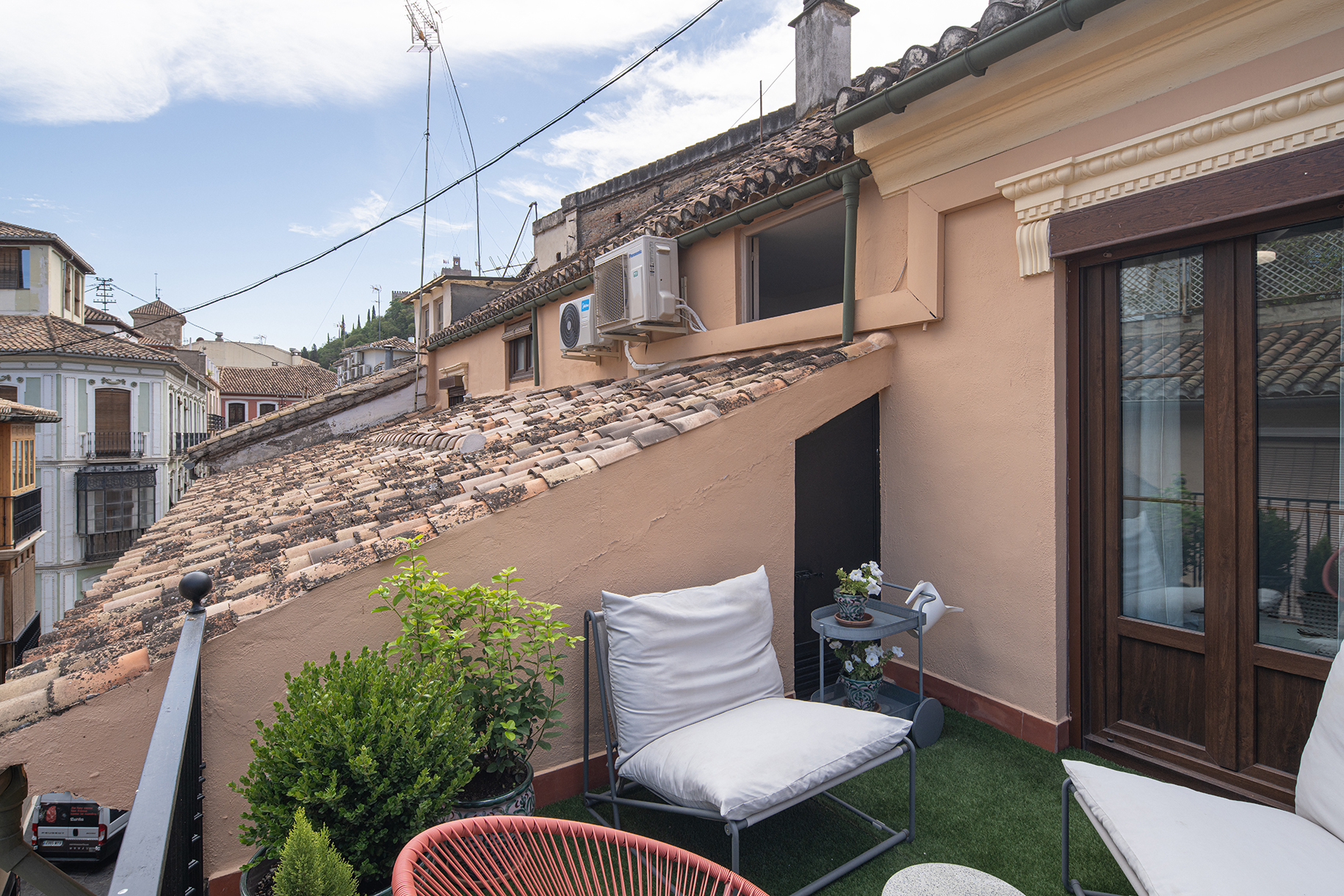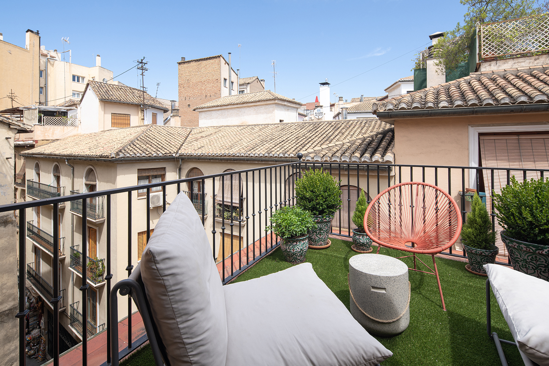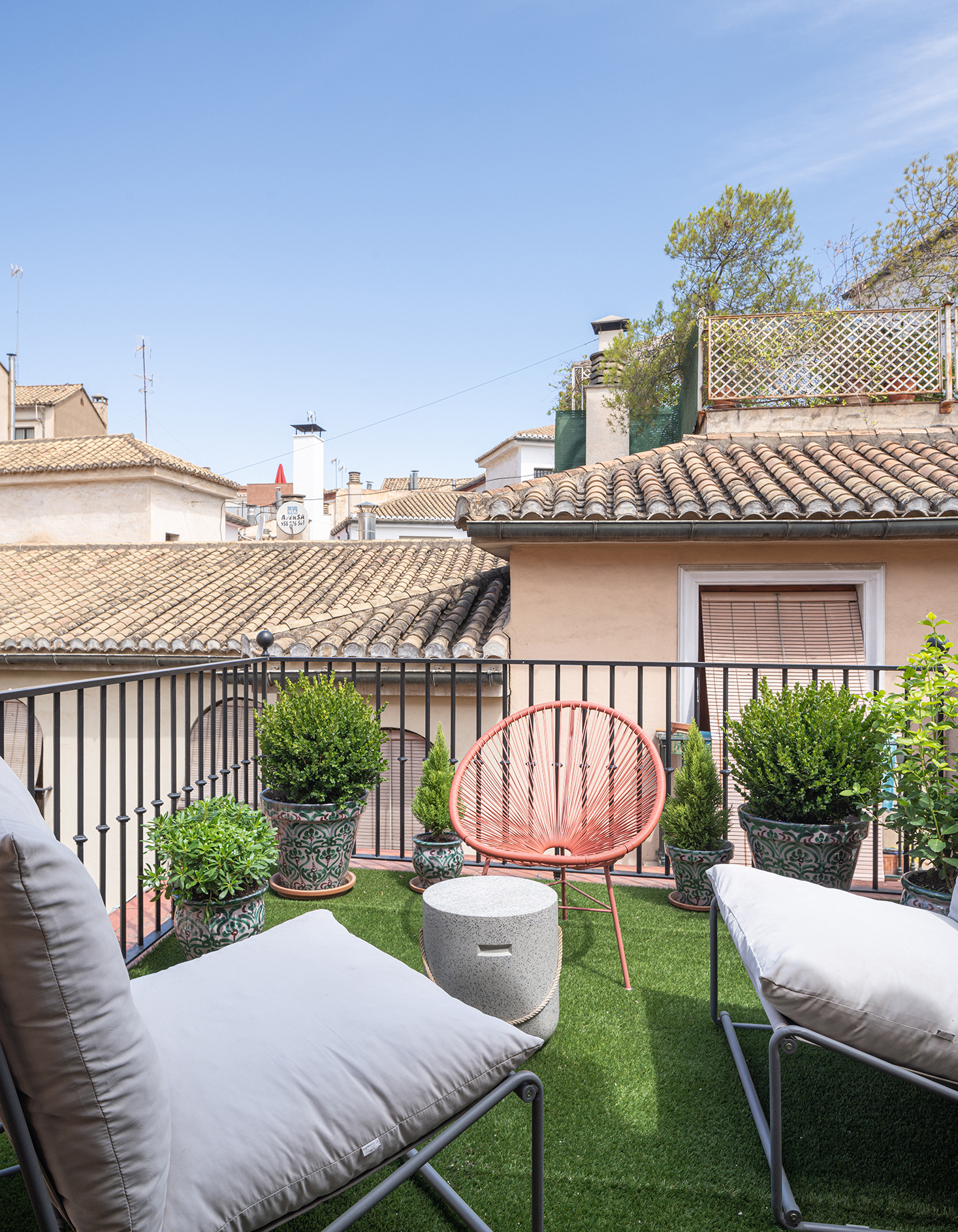 Nuestro alojamiento más puramente granadino. Un interesante hibrido de culturas que se plasman a través de la decoración: inspiración nazarí con toques modernos y de estilo boho.